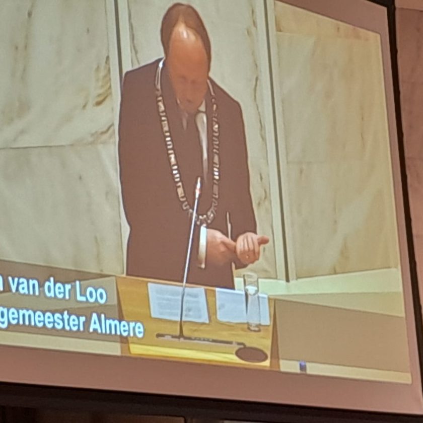 Martine van Bemmel benadrukte dat Van der Loo “oog heeft voor alle inwoners en zichtbaar en benaderbaar is”. Ze adviseerde hem zoveel mogelijk naar buiten te gaan “want Almere maken we niet in het stadhuis, maar vooral buiten.”