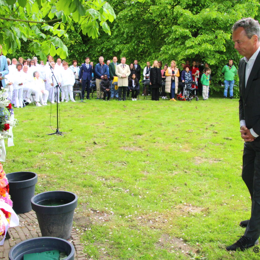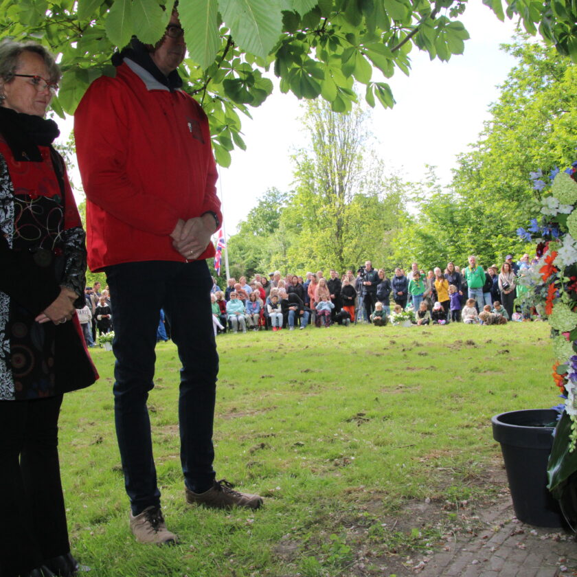 In aanwezigheid van burgemeester van der Loo, gedeputeerde van Dijk en de raadsleden van Wijnandt en Eekhuis werden kransen en bloemen gelegd.
