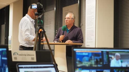 Sven van der Burg en Robert Mienstra vertellen live wat er speelde in de gemeenteraad in het stadhuis.